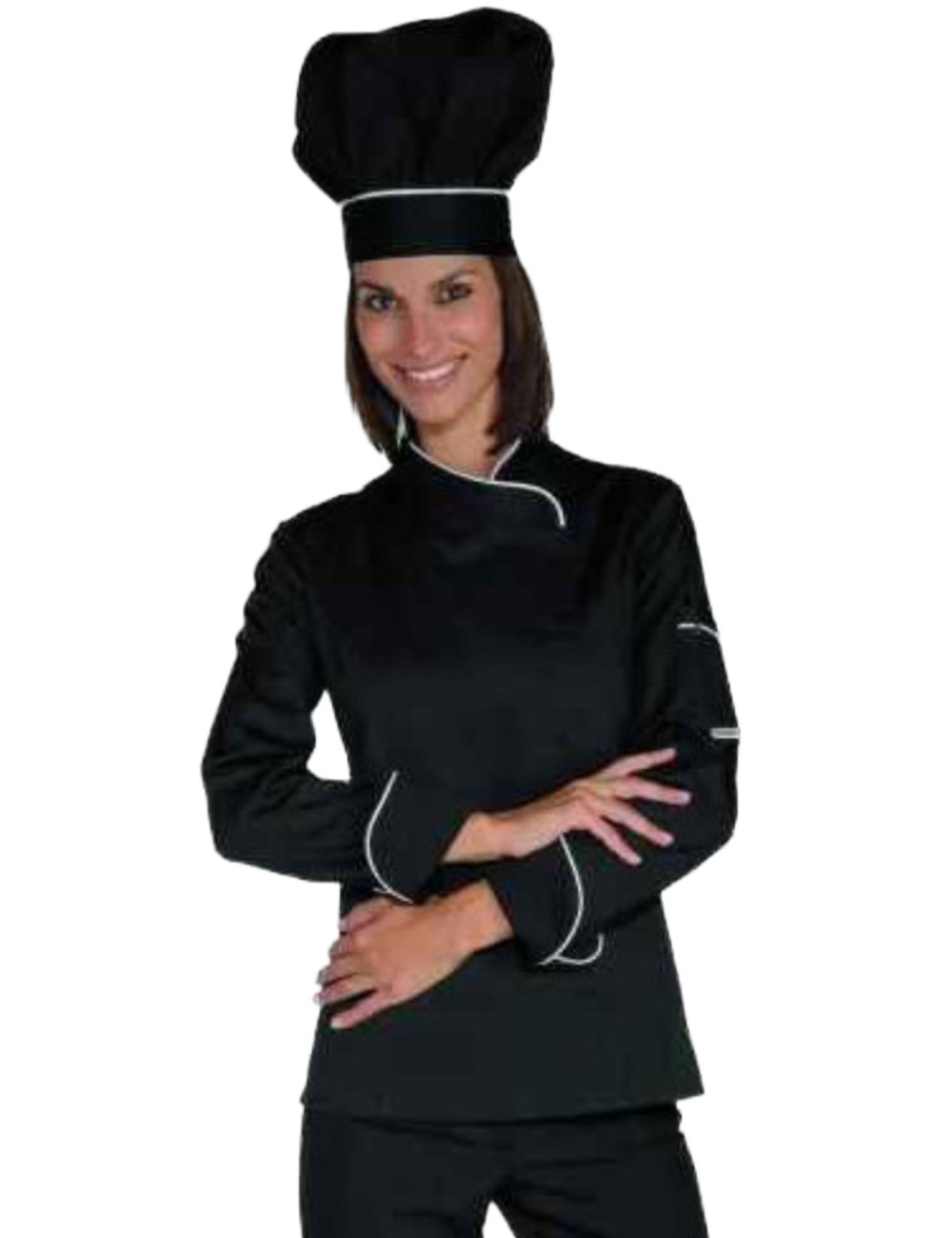 The chef's jacket Lady Snaps Chef's Jacket , available in black and white, is an ideal product for chefs working in kitchens, restaurants, or catering. This jacket features notable characteristics such as: