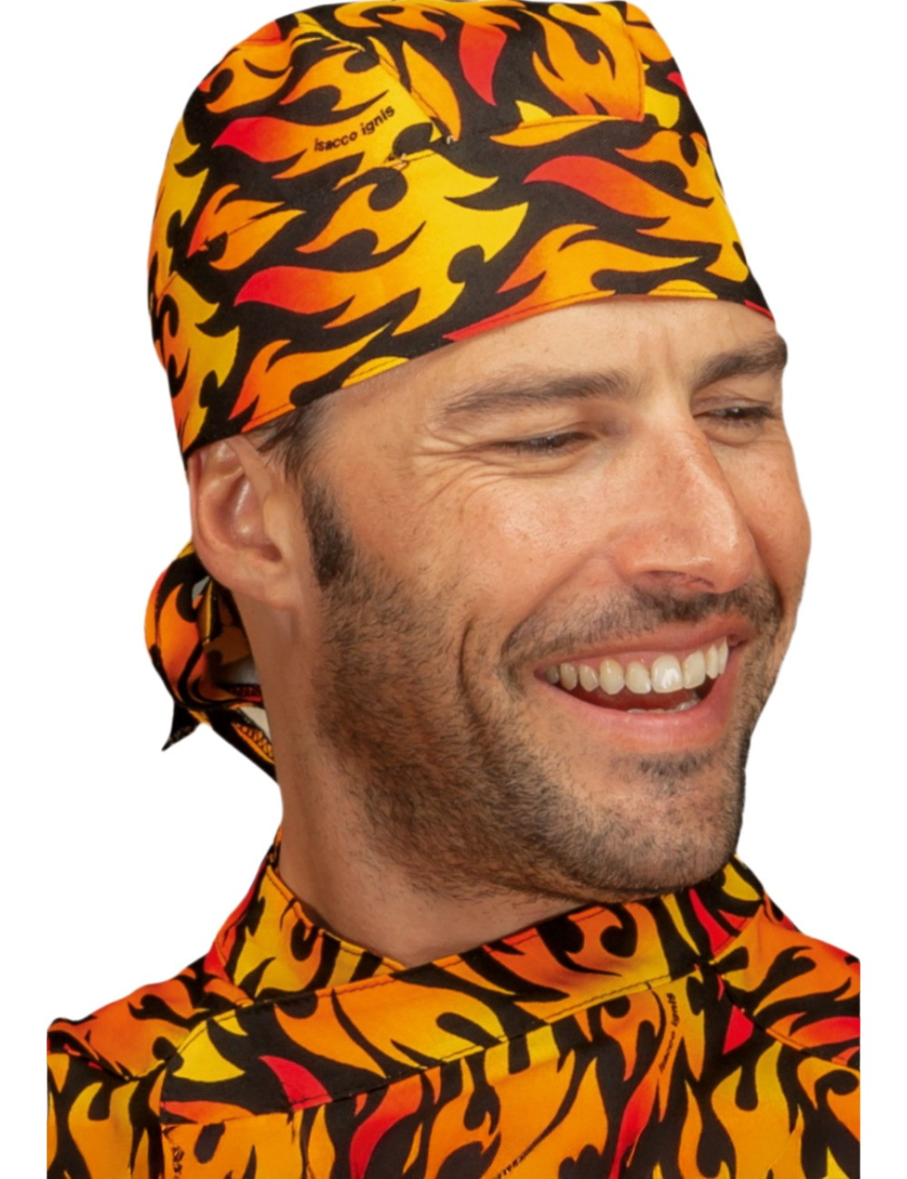 The Flame-pattern Bandana, made of 100% cotton, offers exceptional softness and optimal comfort against the skin.
