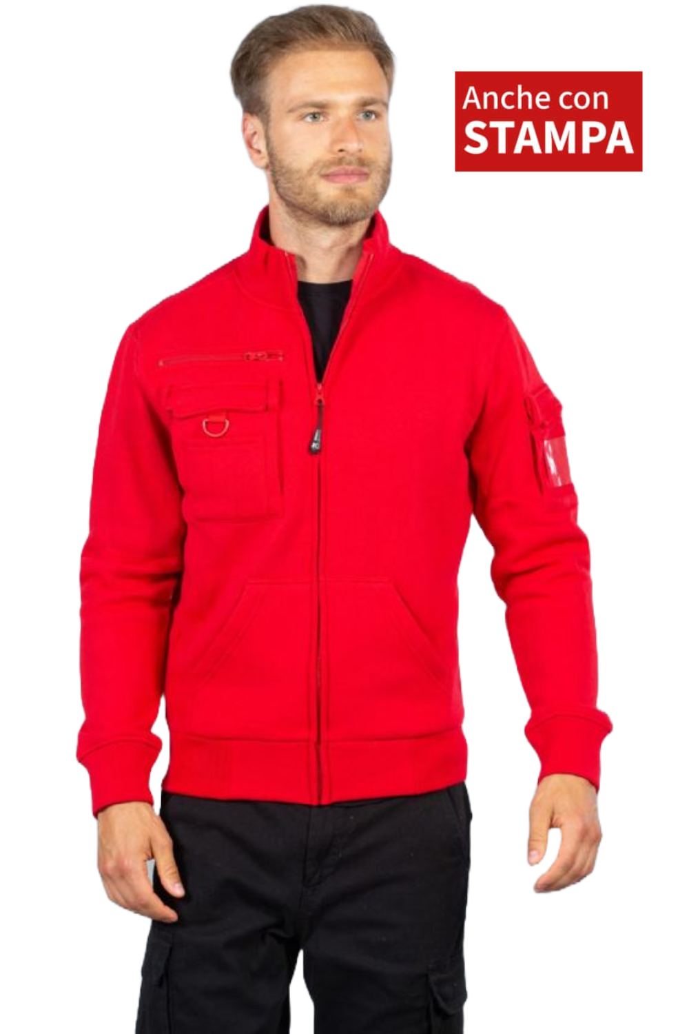 Felpa de trabajo con cremallera larga, bolsillo para tarjeta de identificación en el brazo izquierdo, bolsillos en la cintura y en el pecho.