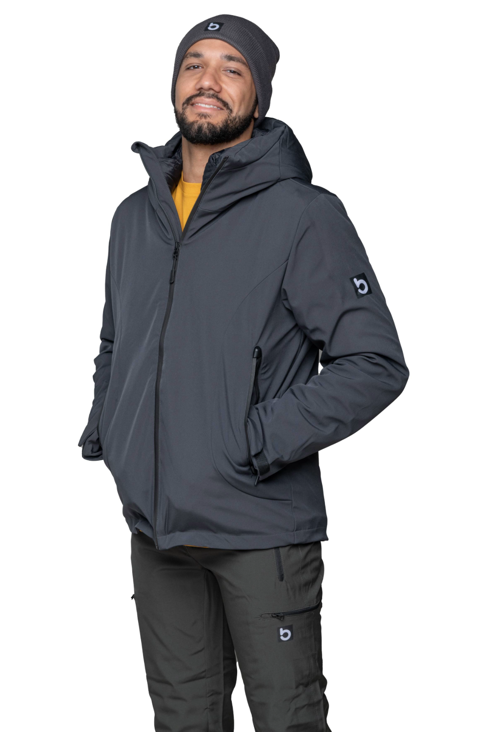 • Cuello alto cortavientos con capucha acolchada y desmontable mediante cremallera (para hombres)