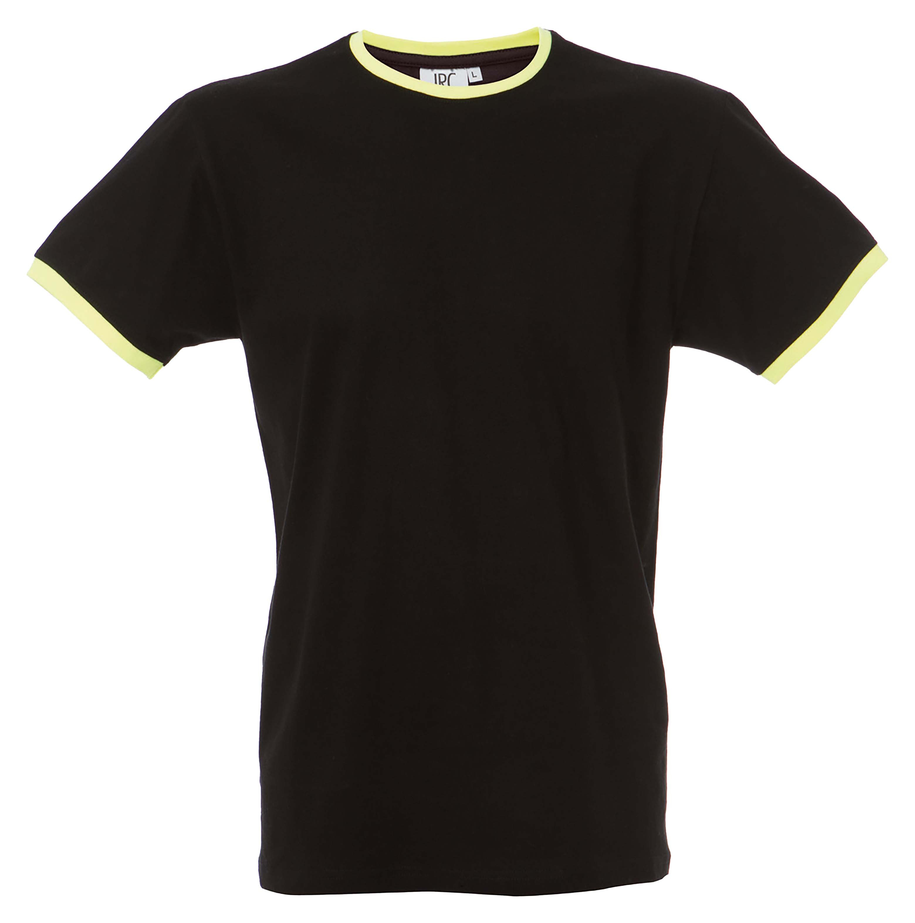 T-shirt manica corta girocollo realizzata interamente in cotone pettinato, con colletto basso di 1.2 cm e fondo manica color fluo.