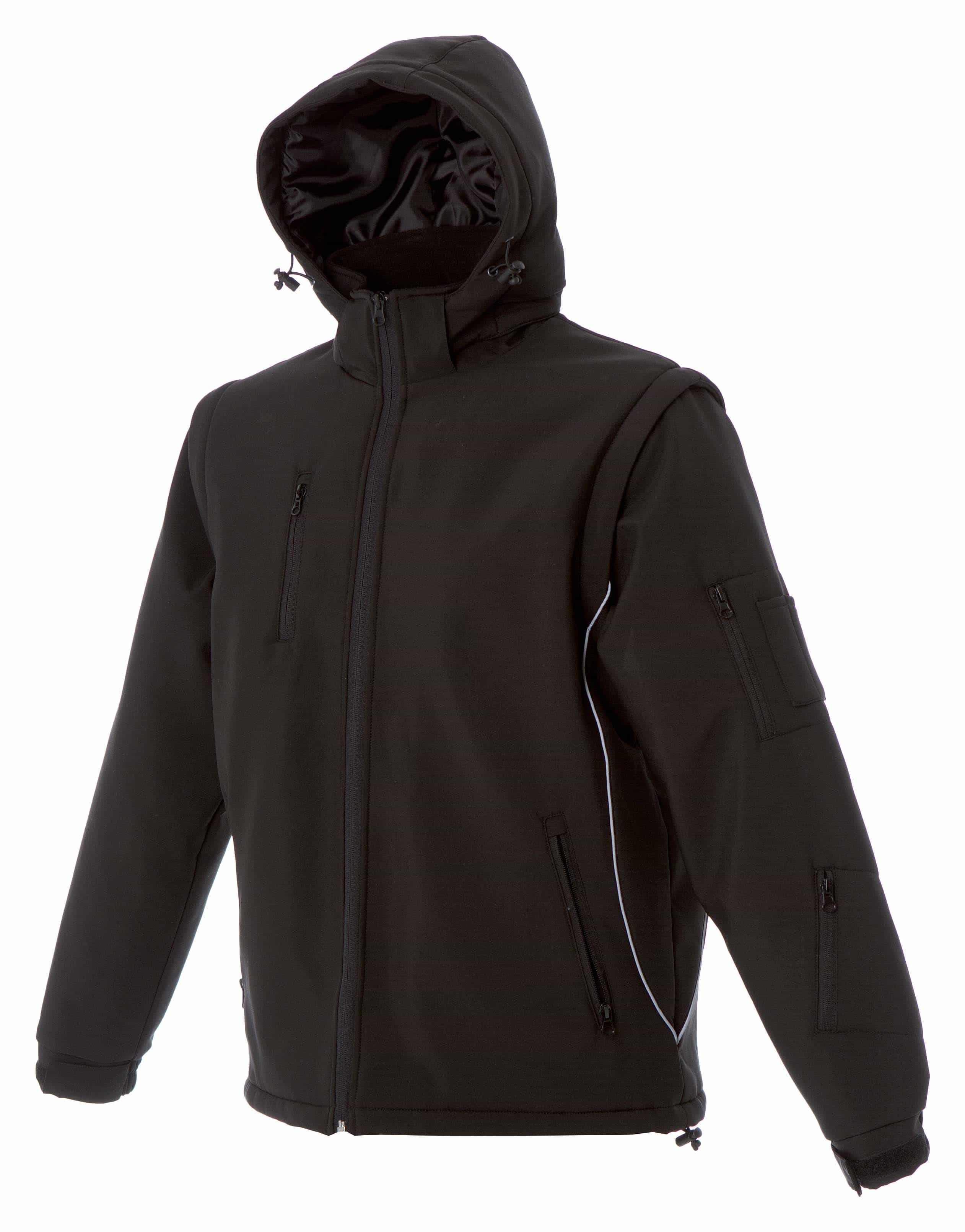 Giubbino in soft shell a due strati imbottito con trattamento idrorepellente.