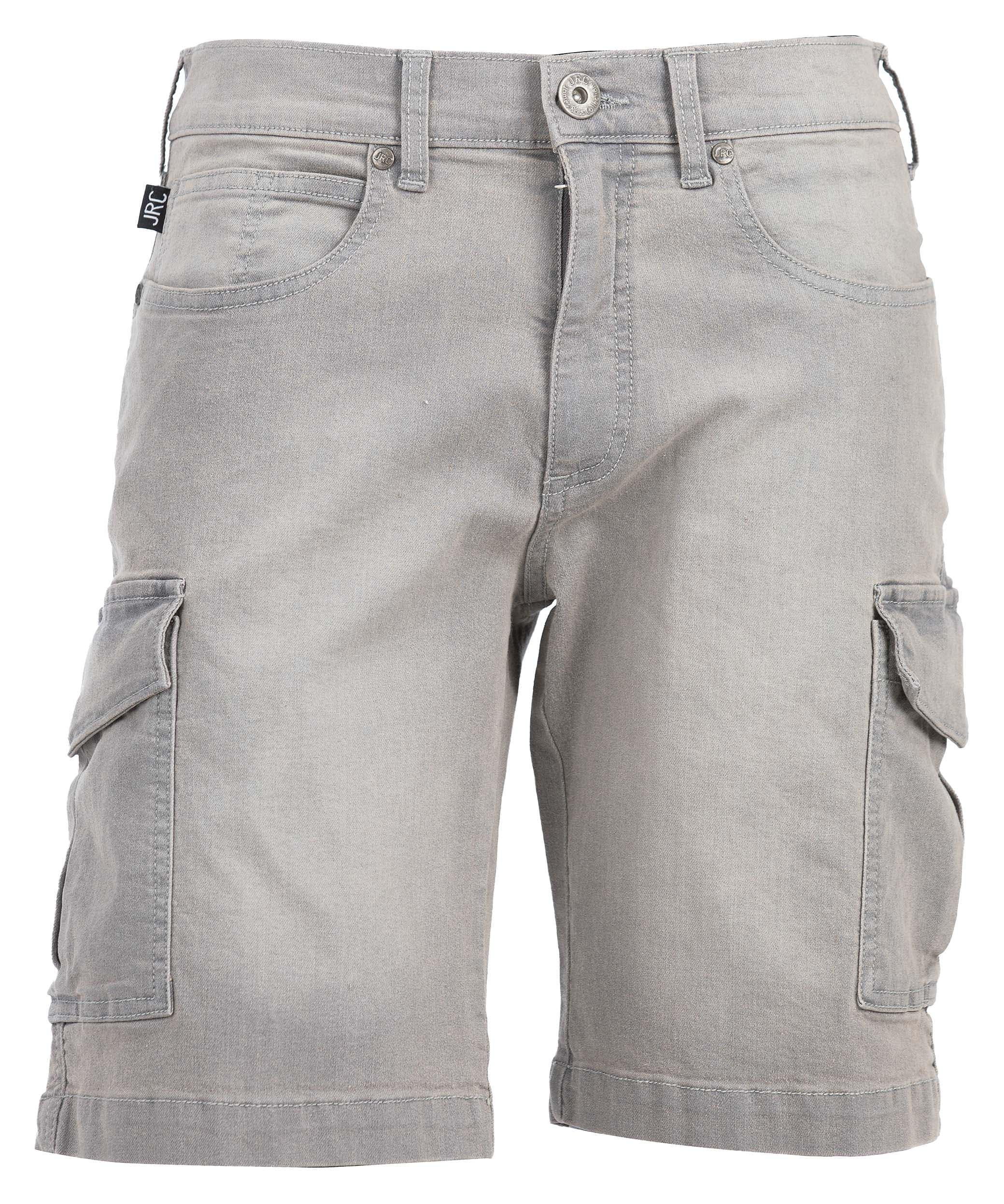 Pantalone corto multitasche in jeans elasticizzato, composto da: 81% cotone, 17% poliestere e 2% elastan.