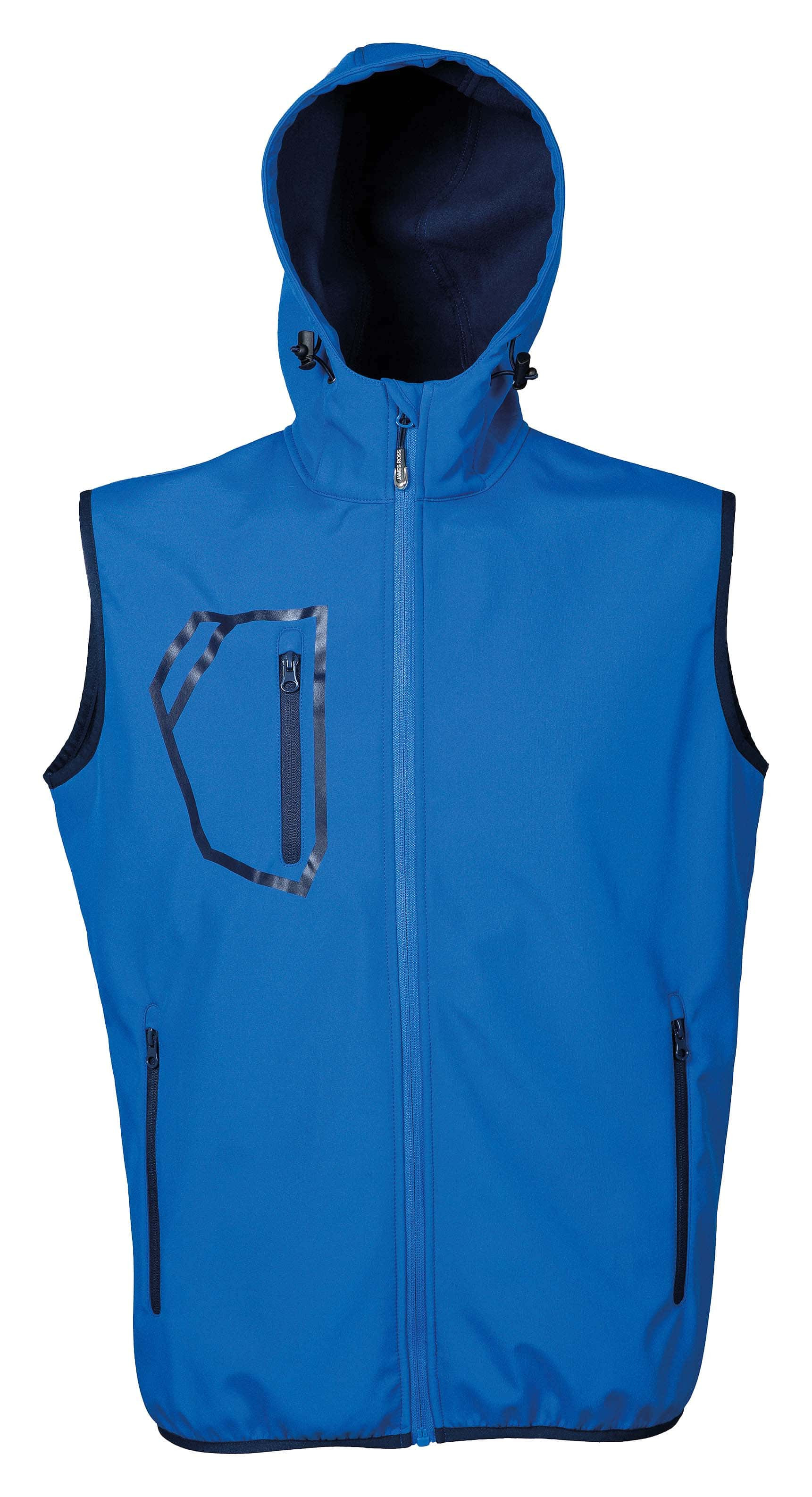 Gilet in soft shell a due strati con trattamento idrorepellente - 96% poliestere- 4% elastan - Trattamento 14000 g/M2/24h - Interno in pile antipilling - Stampe rifrangenti posteriori sulle spalle - Cappuccio con coulisse - Cerniere nastrate - Una tasca con zip sul petto con sagoma tasca stampata - Due tasche esterne con zip - Tessuto elastico nel giromanica - Tessuto elastico al fondo