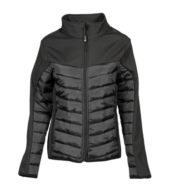 Giubbino in tessuto composito - Corpo e parte inferiore manica in 100% poliestere 300 T cire, con imbottitura in soffice poliestere (effetto piuma) - Spalle, fianchi e parte superiore del busto e della manica in softshell a 2 strati, con interno in pile antipilling - Zip nastrate YKK - Due tasche esterne con zip - Nastro di rinforzo interno collo e tessuto appendiabito - Tessuto elastico ai polsi - Tessuto elastico al fondo
