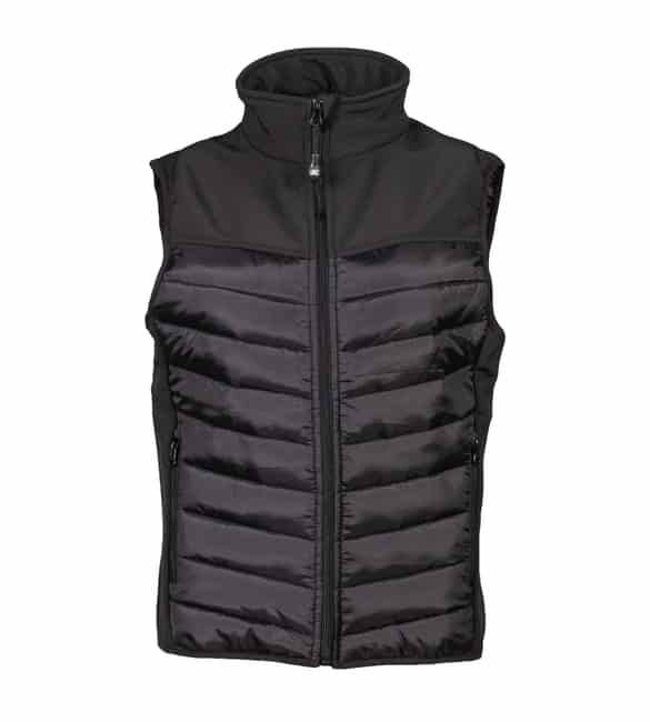 Gilet in tessuto composito - Corpo in 100% poliestere 300 T cire, con imbottitura in soffice polyestere (effetto piuma) - Spalle, fianchi e parte superiore del busto in softshell a 2 strati, con interno in pile antipilling - Cerniere YKK - Due tasche esterne con zip - Tessuto a protezione del mento - Tessuto elastico al giromanica - Tessuto elastico al fondo