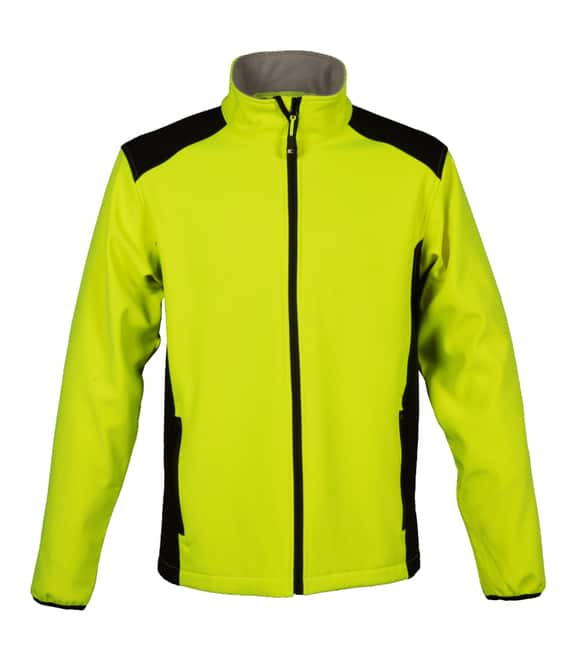 Giubbino bicolore in soft shell a due strati con trattamento idrorepellente - 100% poliestere stretch - Traspirabilità 14000 g/M2/24h - Interno in pile - Cerniere nastrate - Cerniera centrale YKK - Spalle e fianchi in contrasto - Tessuto a protezione del mento con stampa rifrangente - Due tasche esterne con zip - Polsini in tessuto elastico - No label