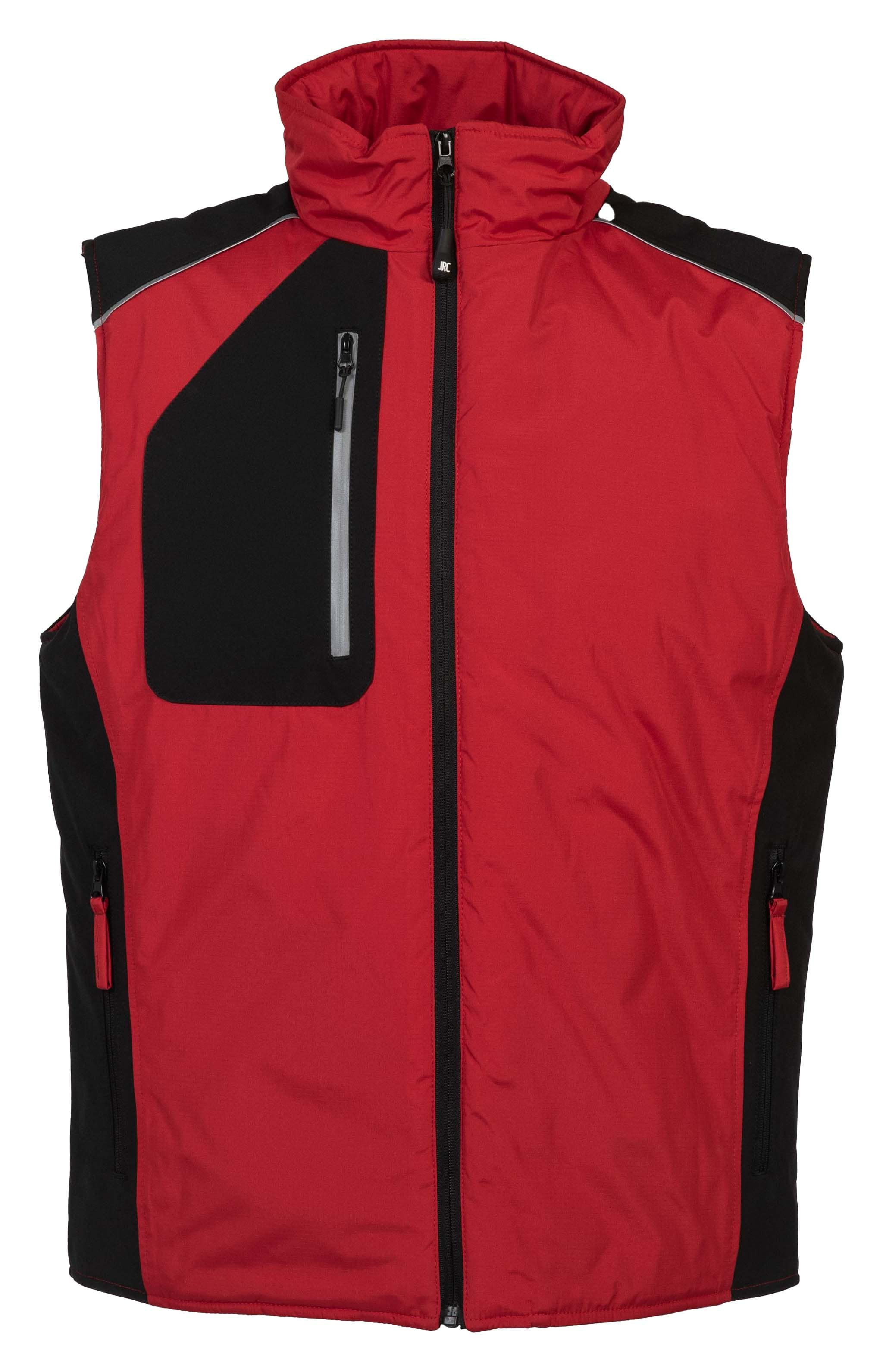 Gilet in poliestere ripstop - Spalle, parte alta della schiena, fianchi e tasca sul petto in tessuto 94% poliestere 6% elastan impermeabile ed elasticizzato, con membrana TPU - Impermeabilità 4000 mm/H2O - Traspirabilità 1000 g/M2/24h - Imbottitura in poliestere - Fodera in poliestere - Profili rifrangenti anteriori sulle spalle e sulla schiena - Una tasca sul petto con zip rifrangente - Due tasche con zip nastrate - Una tasca interna portafoglio con zip - Zip interne sul fondo e sul petto per personalizzare su schiena e cuore